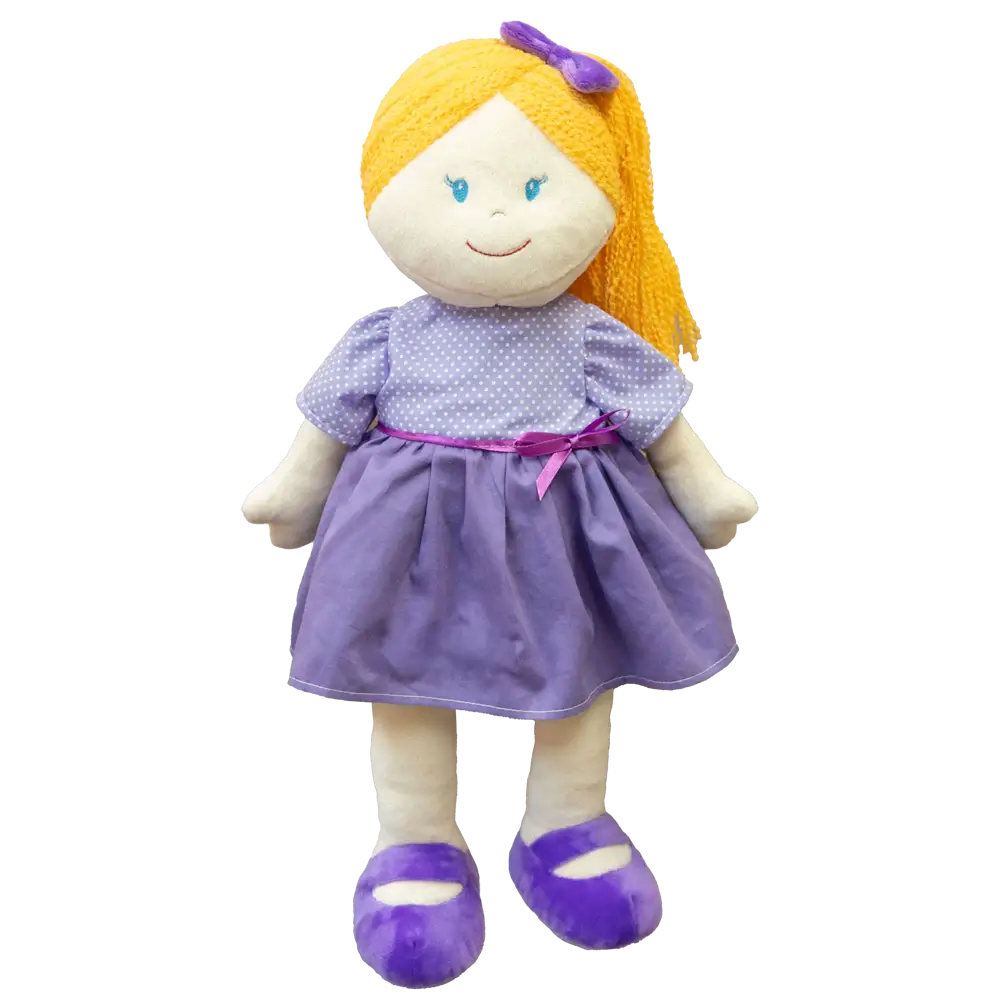 With her bright blonde hair, cheerful purple dress, and ultra-soft plush feel, Amanda is designed for hugs, playtime adventures, and cozy bedtime routines. Her removable dress allows for beautiful custom embroidery, creating a one-of-a-kind keepsake families will treasure for years.